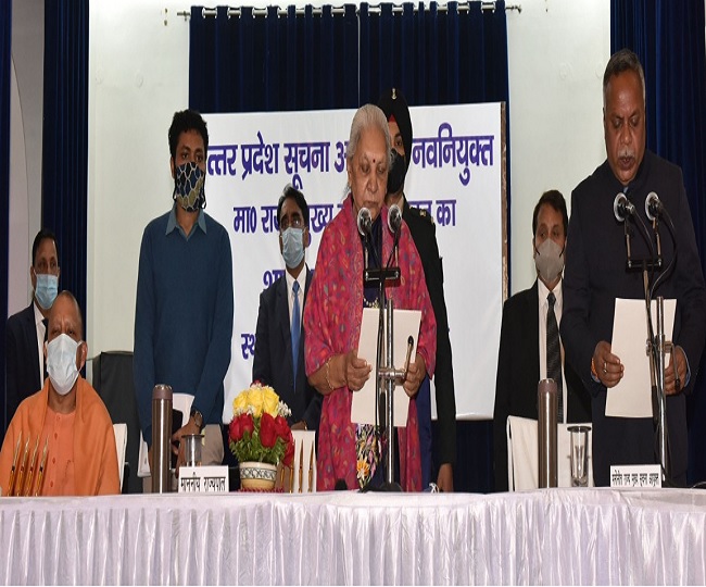 लखनऊ। सेवानिवृत आइपीएस अधिकारी भावेश कुमार सिंह को राज्यपाल आनंदीबेन पटेल ने उत्तर प्रदेश के मुख्य सूचना आयुक्त पद की शपथ दिलाई। राजभवन में इस शपथ ग्रहण समारोह में मुख्यमंत्री योगी आदित्यनाथ के साथ डिप्टी सीएम डॉ. दिनेश शर्मा तथा मंत्रिमंडल के अन्य सहयोगियों के साथ मुख्य सचिव आरके तिवारी भी मौजूद थे।