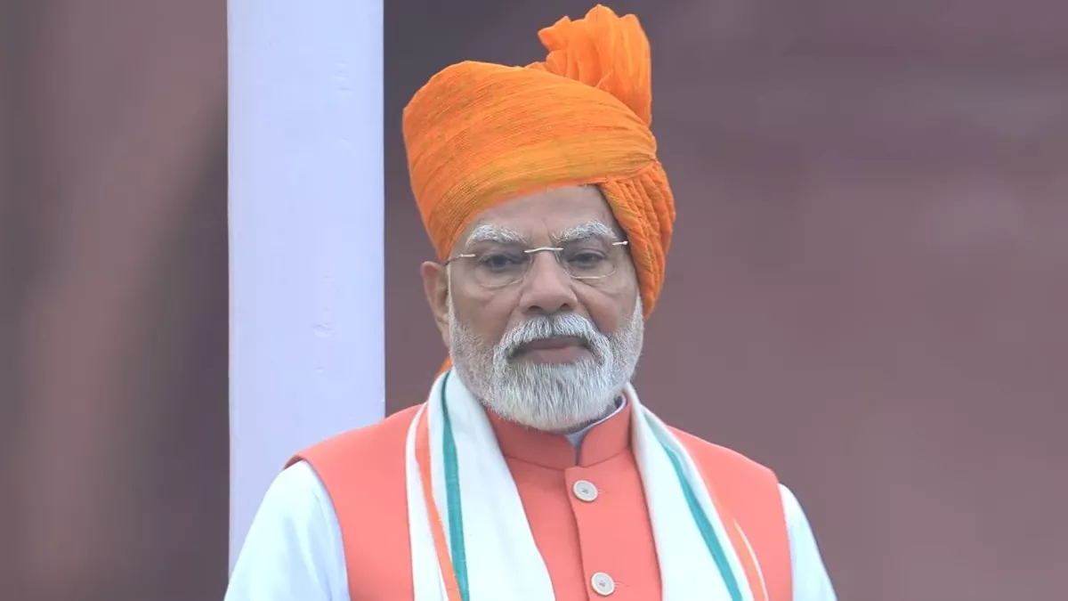 प्रधानमंत्री नरेंद्र मोदी ने 79वें स्वतंत्रता दिवस पर नई दिल्ली के लाल किले पर राष्ट्रीय ध्वज फहराया और राष्ट्र के नाम अपना लगातार 12वां संबोधन दिया। इस दौरान पीएम मोदी भगवा पगड़ी और भगवा रंग की सदरी पहने नजर आए पीएम मोदी ने 103 मिनट लंबा संबोधन देश के नाम दिया। बता दें पीएम मोदी लाल किले की प्राचीर से सबसे अधिक बार तिरंगा फहराने वाले तीसरे प्रधानमंत्री हैं।