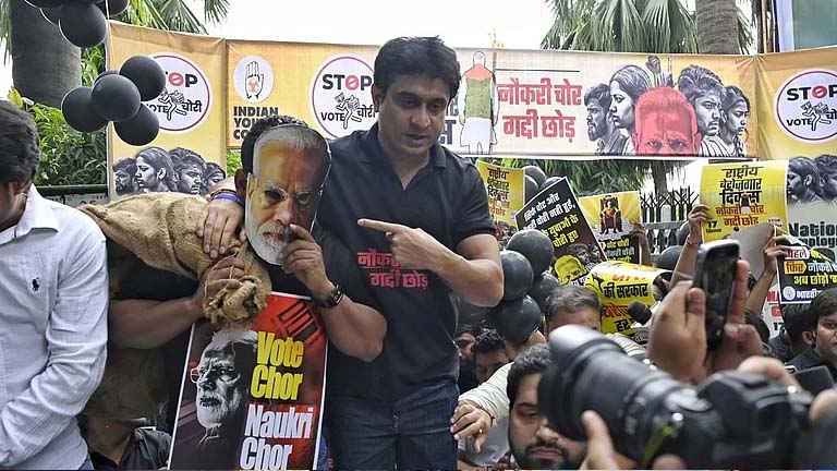 भारतीय युवा कांग्रेस ने बुधवार को दिल्ली में प्रधानमंत्री नरेन्द्र मोदी के जन्मदिन को ‘राष्ट्रीय बेरोजगार दिवस’ के रूप में मनाया और बेरोजगारी के मुद्दे पर सांकेतिक विरोध जताते हुए चाय-पकौड़े का स्टॉल लगाया। इस दौरान यूथ कांग्रेस के अध्यक्ष उदय भानु चिब ने कहा कि पीएम मोदी ‘वोट चोर’ के साथ ‘नौकरी चोर’ भी हैं। इसीलिए हमने ‘नौकरी चोर, गद्दी छोड़’ का नारा दिया है।