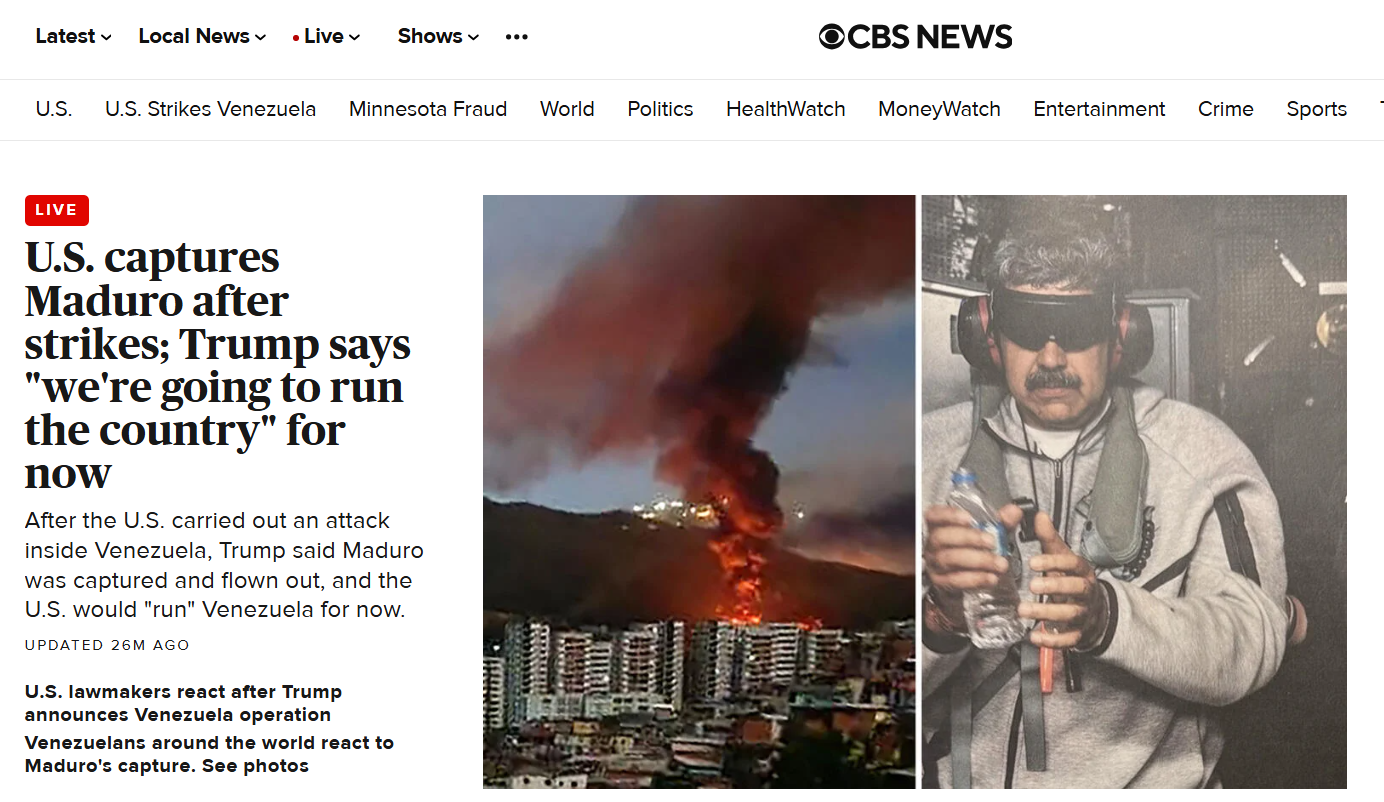 अमेरिकी राष्ट्रपति ने वेनेजुएला पर हमले के बाद मादुरो और उनकी पत्नी को पकड़े जाने की घोषणा की। अमेरिका ने हवाई हमलों में काराकास और उसके आसपास के इलाकों पर बमबारी की।