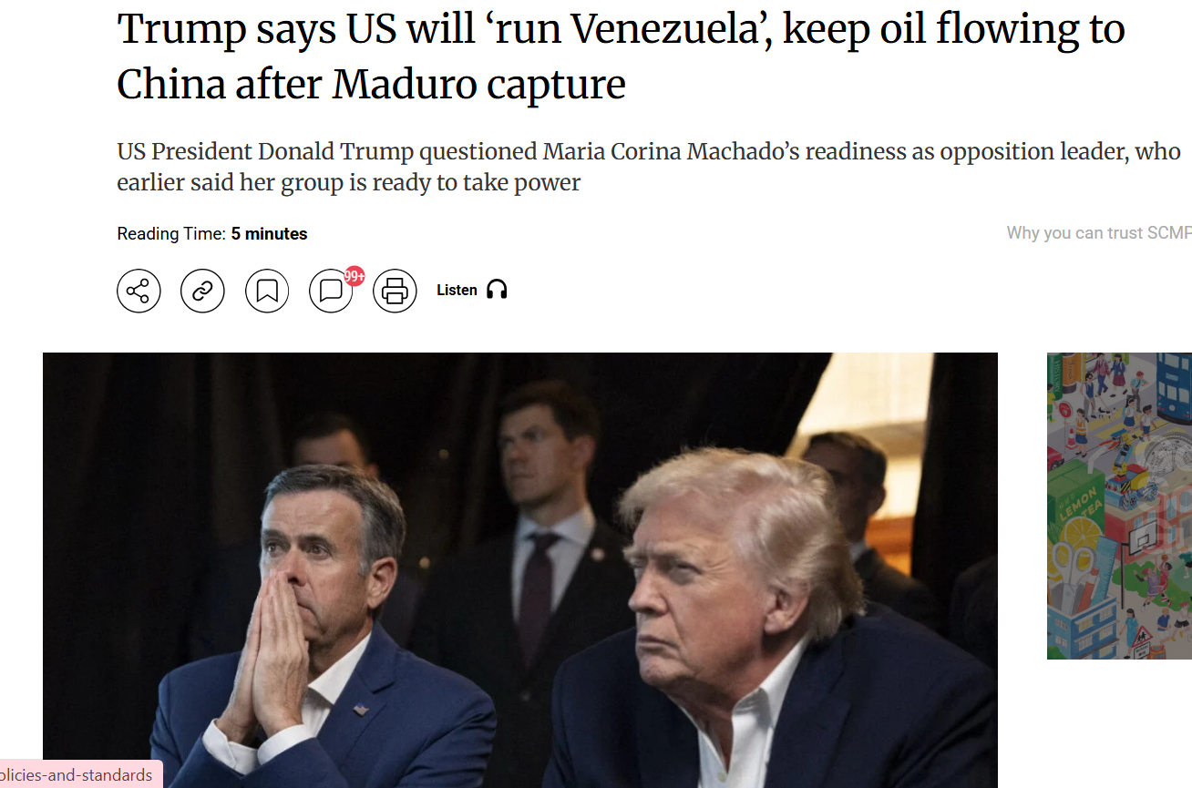 चीन- साउथ चाइना मॉर्निंग पोस्ट: अमेरिका ने मादुरो की सत्ता हथियाई, चीन को तेल देना जारी रखेगा