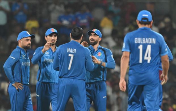 रहमानुल्लाह गुरबाज ने इब्राहिम जादरान के साथ 5.3 ओवरों में 47 रन की साझेदारी की। गुरबाज 20 गेंदों में 5 चौकों के साथ 30 रन बनाकर आउट हुए, जिसके बाद गुलबदीन नायब (1) भी पवेलियन लौट गए। यह टीम 49 के स्कोर तक अपने 2 विकेट गंवा चुकी थी। यहां से सेदिकुल्लाह अटल ने इब्राहिम जादरान के साथ तीसरे विकेट के लिए 59 गेंदों में 95 रन की साझेदारी की। सेदिकुल्लाह 32 गेंदों में 2 छक्कों और इतने ही चौकों के साथ 44 रन बनाकर आउट हुए, जिसके बाद जादरान ने अजमतुल्लाह उमरजई (13) के साथ 31 रन, जबकि दरवेश रसूली (नाबाद 4) के साथ 25 रन जोड़े।