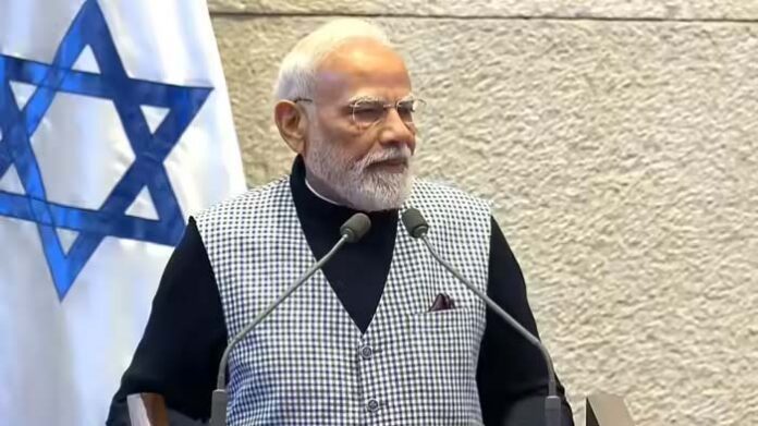 तेल अवीव: प्रधानमंत्री नरेंद्र मोदी ने बुधवार को इजरायल की संसद (नेसेट) को संबोधित करते हुए दोनों देशों के रिश्ते पर बात की है। पीएम मोदी ने हमास का नाम लेते हुए इजरायल पर हुए 7 अक्टूबर के हमले की खुलकर निंदा की। हालांकि उन्होंने फिलीस्तीन मुद्दे से भी किनारा नहीं किया। इजरायली संसद में खड़े होकर उन्होंने गाजा की बात की और ये कहा कि भारत संयुक्त राष्ट्र की पहल के साथ खड़ा है। यह क्षेत्र के लोगों के लिए न्यायपूर्ण और टिकाऊ शांति का वादा करता है, जिसमें फिलिस्तीन मुद्दा शामिल है।